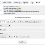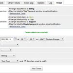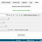 WHMCS Ticket Timer is similar to Ubersmith’s Timer. It allows you to schedule a specific ticket to perform some advanced actions such as: changing ticket status, changing ticket urgency (priority), changing department, flagging ticket to an admin, etc…It will even send you a notification when the Timer goes off.